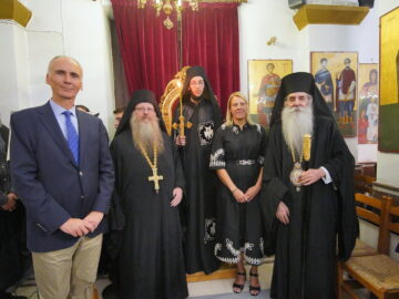 Ο εψηφισμένος Αρχιεπίσκοπος Σινά, Φαράν και Ραϊθώ κ. Συμεών στον Σεβασμιώτατο Μητροπολίτη Πειραιώς κ. Σεραφείμ.