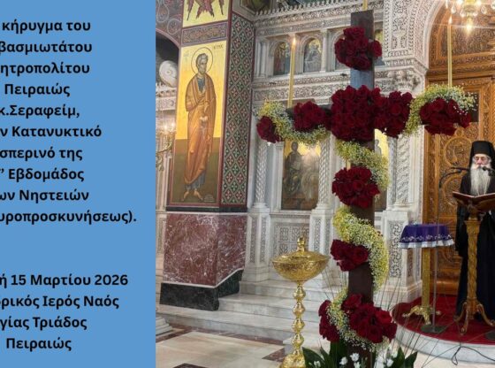 Ο Κατανυκτικός Εσπερινός της B΄ Εβδομάδος των Νηστειών στην Ιερά Μητρόπολη Πειραιώς – Η ομιλία του Σεβασμιωτάτου.