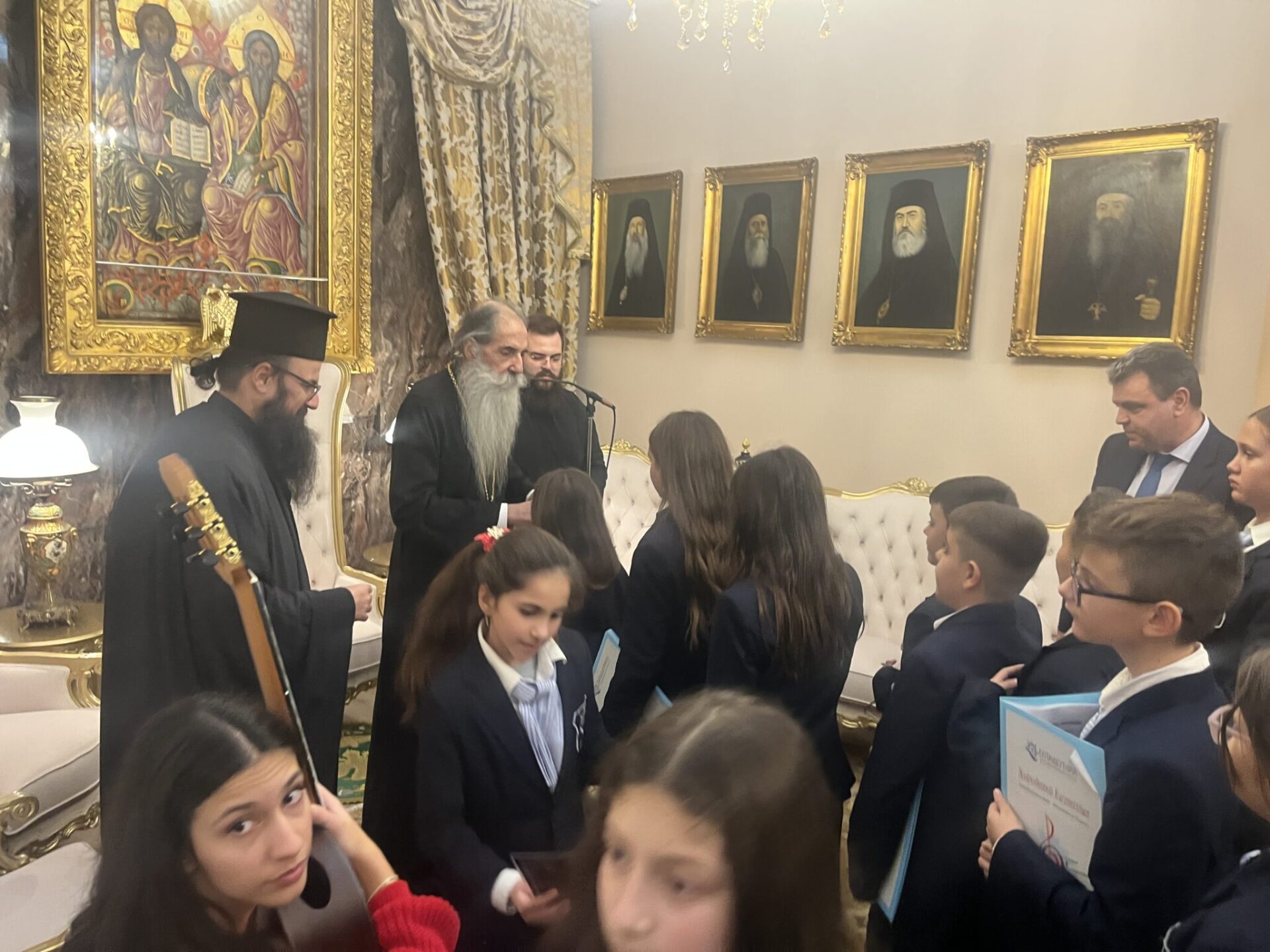 Ευχήθηκε υγεία, πρόοδο και κάθε ευλογία από το Θεό και αναφέροντας πως ο Θεός έγινε και ο ίδιος βρέφος και μικρό παιδί λέγοντας σε όλο τον κόσμο ότι εάν δεν γίνεται σαν τα παιδιά δεν θα μπείτε στη Βασιλεία του Θεού, επεσήμανε ότι «εσείς μας διδάσκεται, μας εμπνέετε, μας οδηγείτε, μας φωτίζεται και να ξέρετε ότι σας αγαπάμε πολύ».