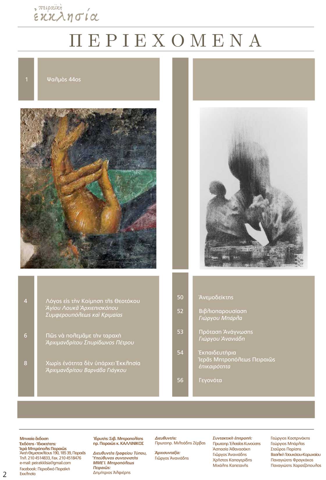 Το περιοδικό της Πειραϊκής Εκκλησίας μπορείτε να το βρείτε σε όλους τους Ναούς της Ιεράς Μητροπόλεως Πειραιώς, καθώς και σε κεντρικά βιβλιοπωλεία.