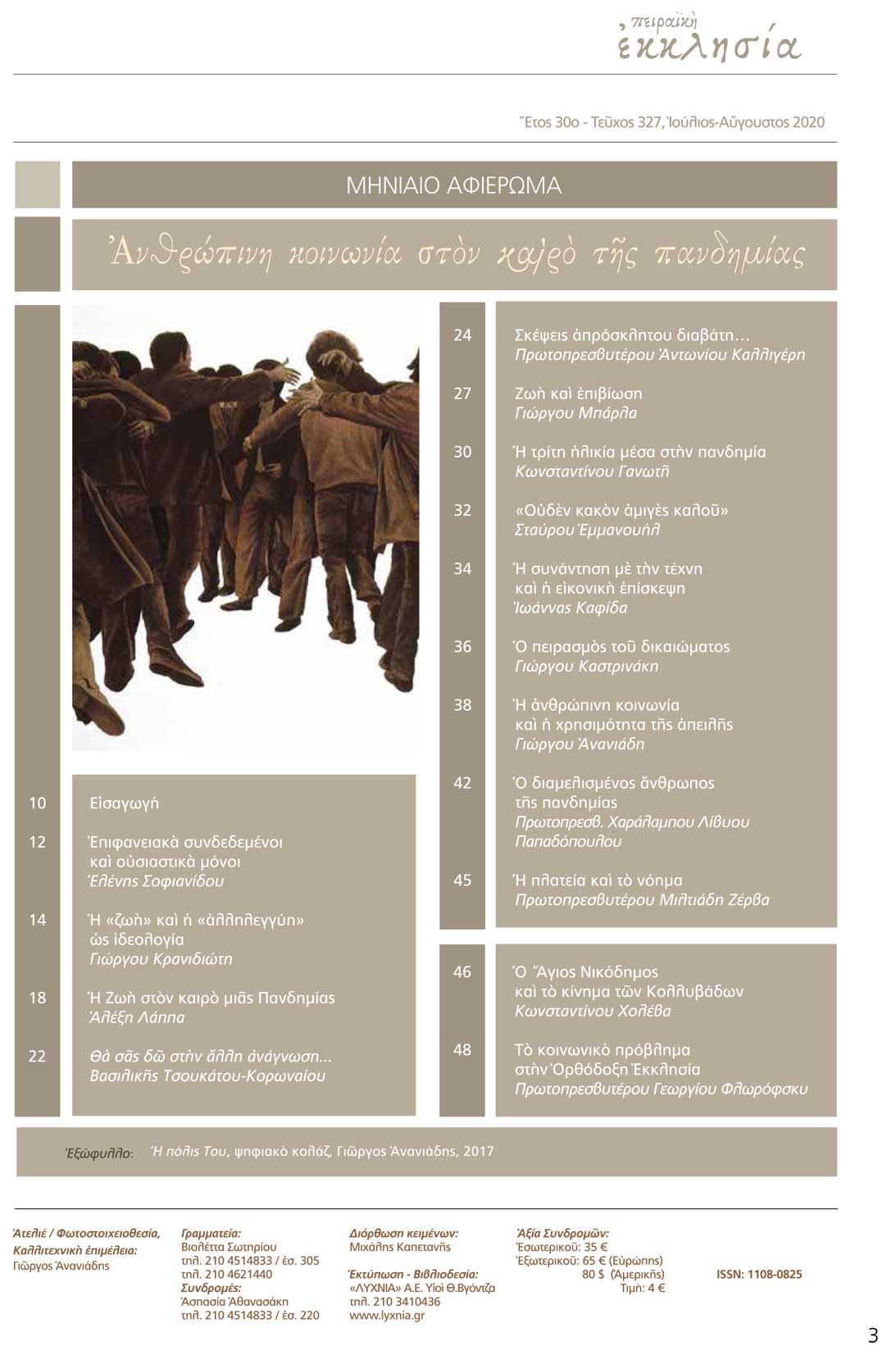 Το κεντρικό αφιέρωμα έχει θέμα: Ανθρώπινη κοινωνία στον καιρό της πανδημίας.