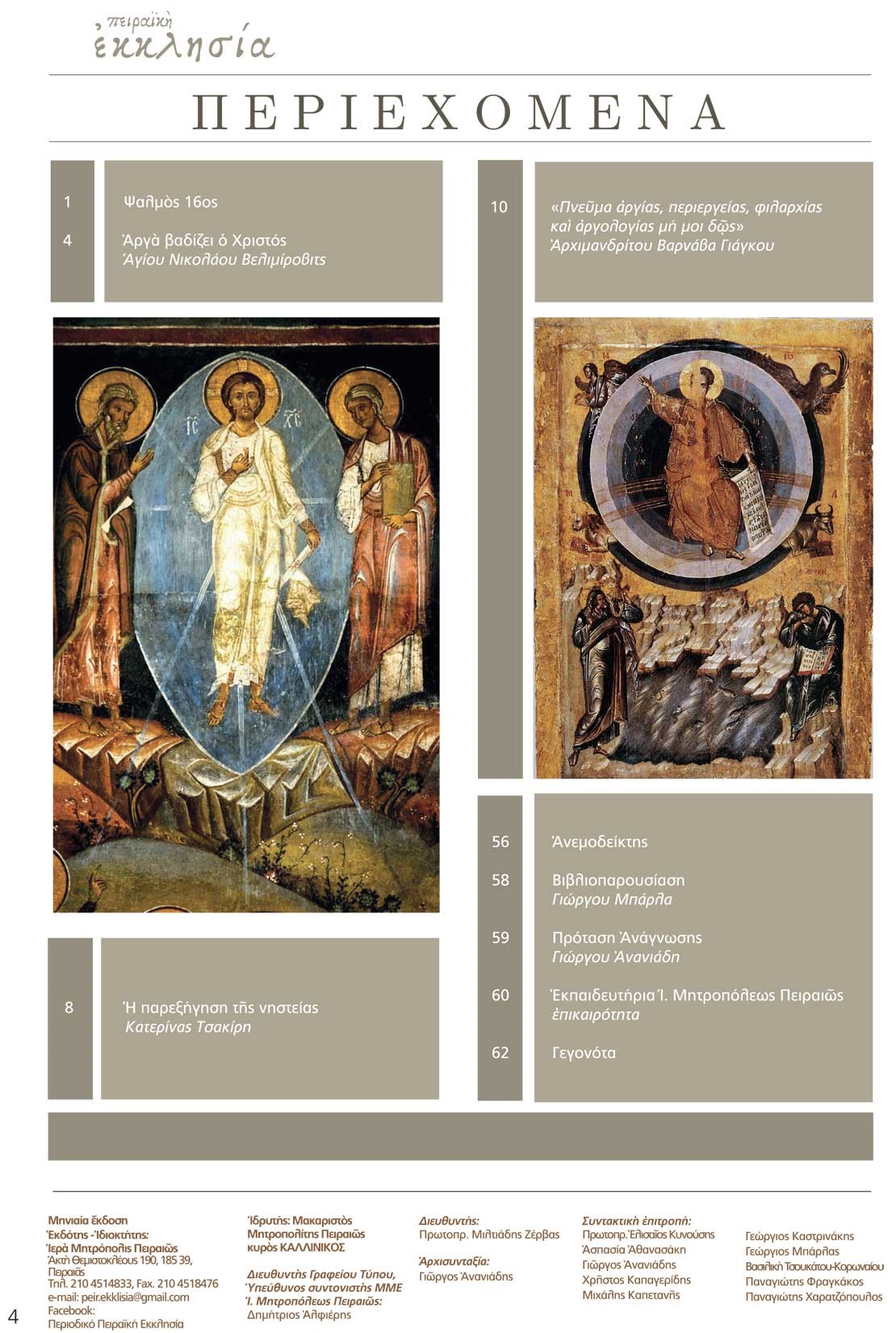 Το περιοδικό της Πειραϊκής Εκκλησίας μπορείτε να το βρείτε σε όλους τους Ναούς της Ιεράς Μητροπόλεως Πειραιώς.